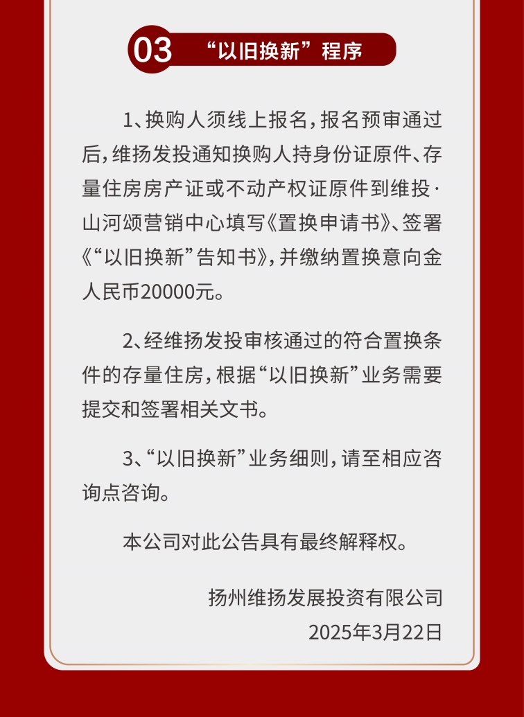 隨著(zhù)培土奠基儀式的完成,維投·山河序正式駛入建設快車(chē)道,項目即將開(kāi)售。結合維揚發(fā)投推出的以舊換新3.0政策,多維度降低了改善門(mén)檻。項目以墅質(zhì)產(chǎn)品哲學(xué),呼應城市奮斗者對品質(zhì)人居與生活理想的雙重追求,以國企匠心為揚州人居史鐫刻濃墨重彩的“山河序章”。
